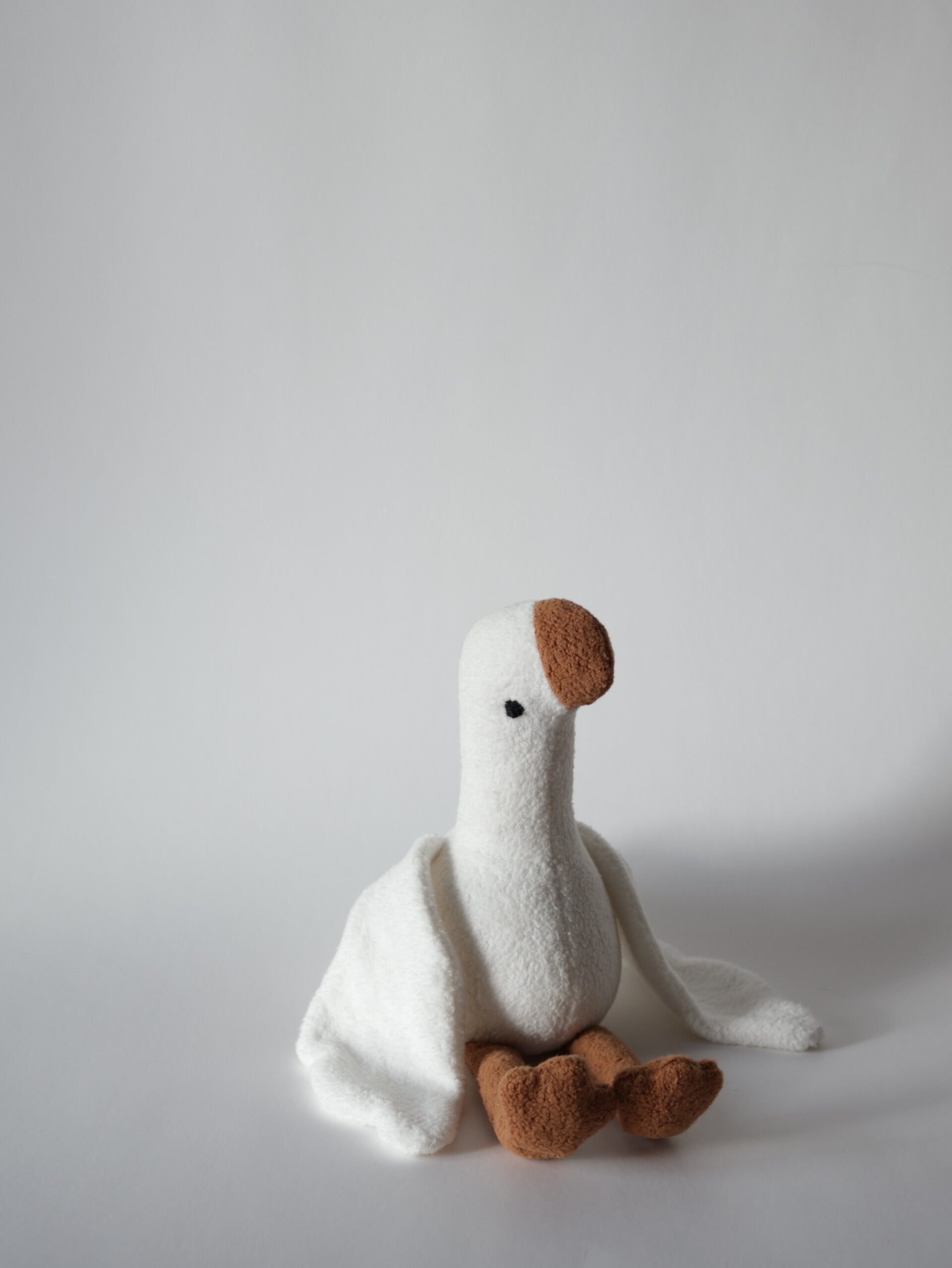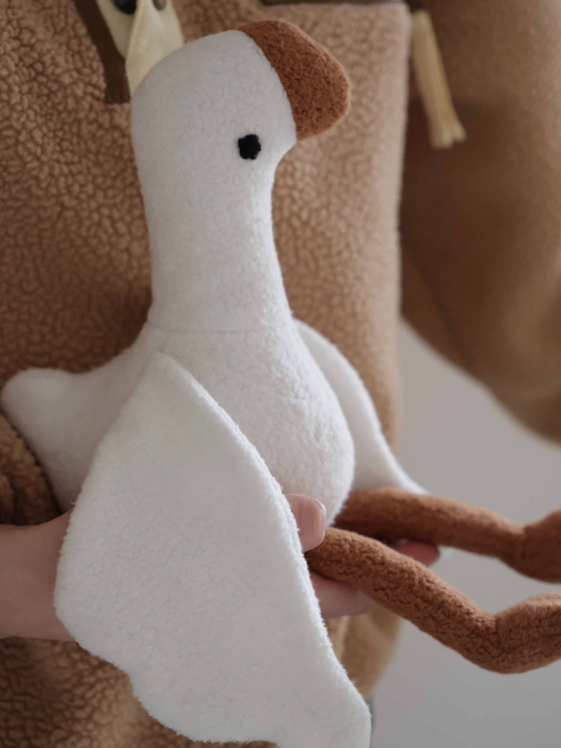 Add a bit sillyness to your life with this cute Goose Plush. Their floppy wings and tapered design make it perfect for tiny hands. Ready for endless play, adventures or just a lovely addition to a beautiful room.